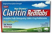 INDICATIONS: Claritin Non-Drowsy 24 Hour Allergy Relief RediTabs 24 hour relief of: Sneezing. Runny nose. Itchy, watery eyes. Itchy throat or nose. INGREDIENTS: Active Ingredients: Loratadine 10 mg (Antihistamine).