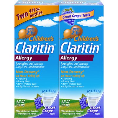- Temporarily relieves these symptoms due to hay fever or other upper respiratory allergies: runny nose, sneezing, itchy, watery eyes and itching of the nose or throatDelicious grape flavorNondrowsy formula won't cause sleepiness when taken as directedAdults and children 6 years and over: Take 2 teaspoonfuls dailyChildren 2 to under 6 years of age: Take 1 teaspoonful dailyDo not take more than 1 dose in any 24-hour periodContains 5mg loratadine